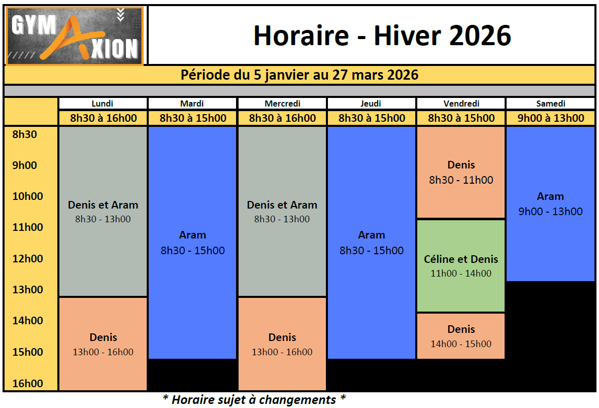Kinésiologue Denis Jolicoeur M.Sc., Céline Bernier, kinésiologue et Aram Kazandjian, éducateur physique. Tél. 450-978-5555 poste 135